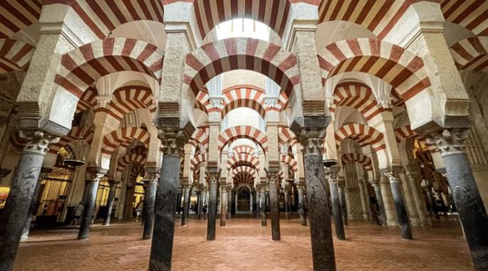 The Mezquita is one of Europe’s most striking religious structures — a mosque-cathedral hybrid that captures Spain’s complex past. Its iconic forest of red-and-white arches dates back to the 8th century and serves as a hallmark of its Moorish design. When it became a Catholic cathedral in 1236, a Renaissance nave and other features were added — blending Christian elements with its Islamic foundation.