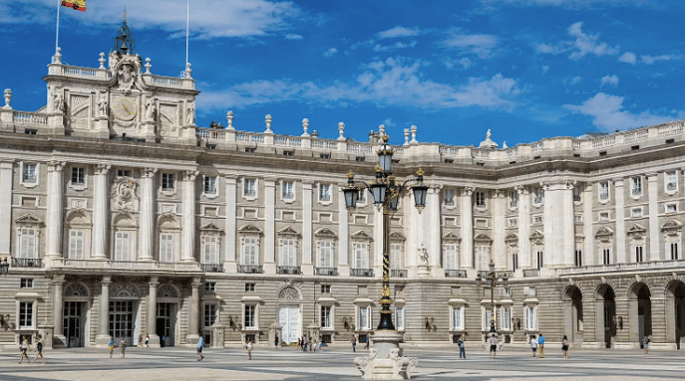 Meet the largest royal residence in western Europe: the 3,418-room Palacio Real, also known as The Royal Palace of Madrid. Built in the 18th century on the site of a former Moorish fortress, it served as the official home of Spain’s monarchs and remains the setting for state ceremonies today. Inside, visitors find grand staircases, elaborate frescoes, and treasures such as Stradivarius instruments and works by Goya and Velázquez. With its mix of Baroque and Neoclassical styles and its sprawling size, it’s one of Madrid’s most striking landmarks.